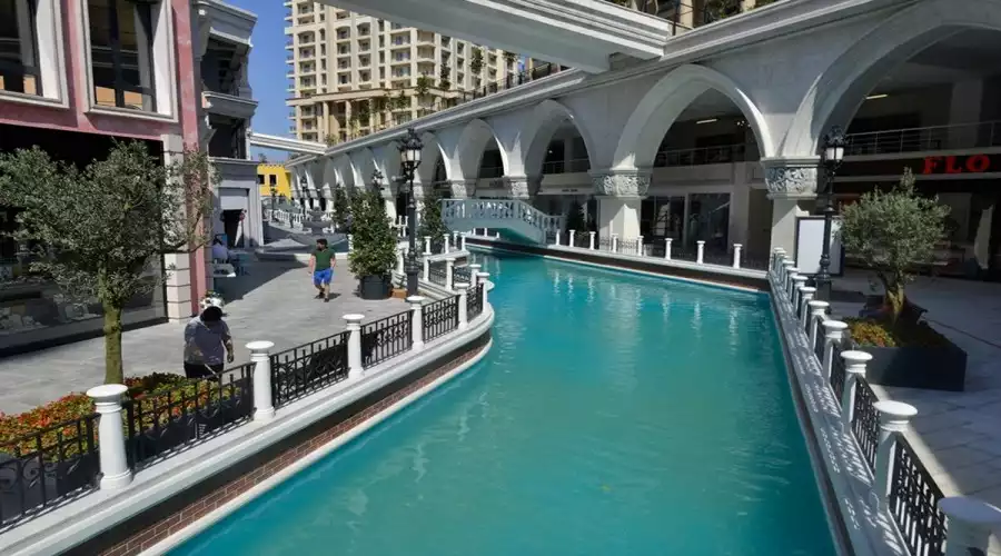 معماری این مرکز یادآور کانال‌ها و پل‌های شهر ونیز است؛ قایق‌ها در کانال‌های مصنوعی حرکت می‌کنند و فضا کاملاً فانتزی و اینستاگرامی است.